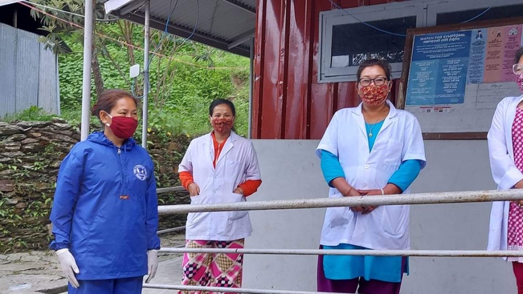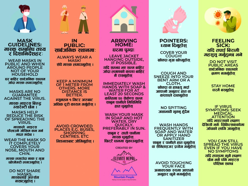 a ’Corona Prevention and Treatment Workshop.’ Here, using Mountain People/Elevate two posters we led the health workers through: